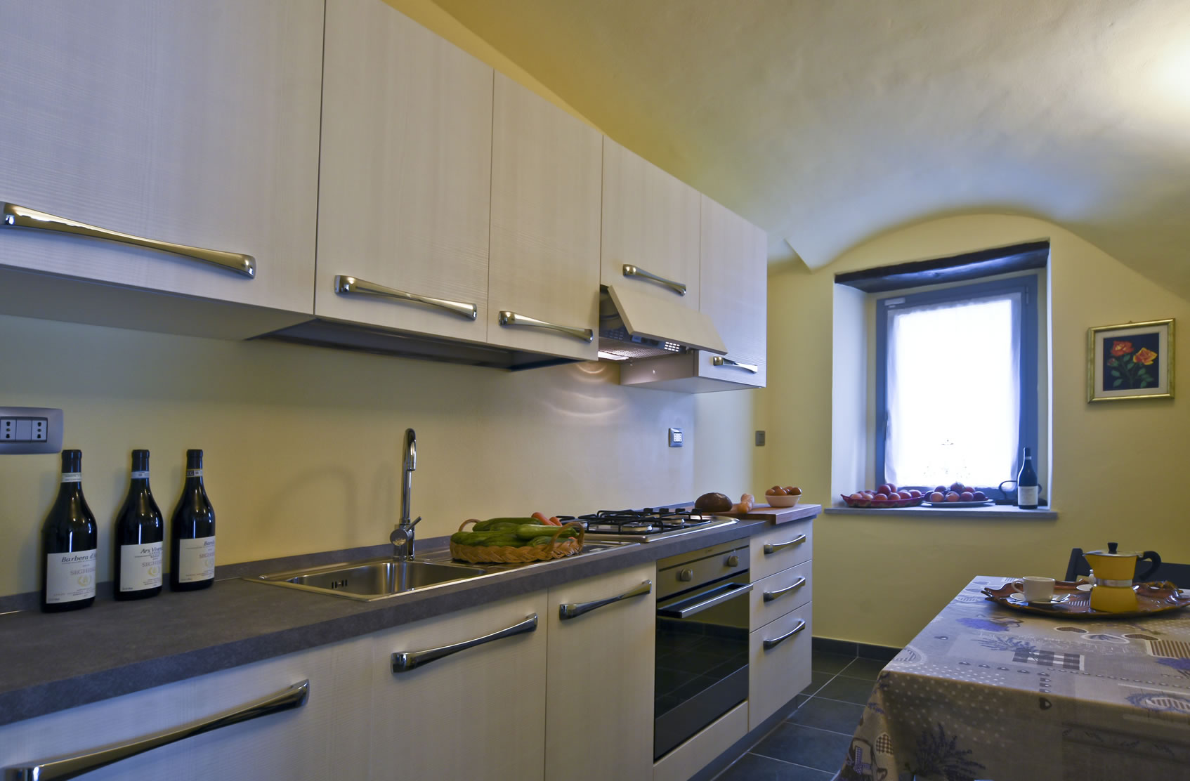Appartamento da 80 mq, 2 camere da letto + salone + cucina + bagno + area esterna con tavolo e sedie.