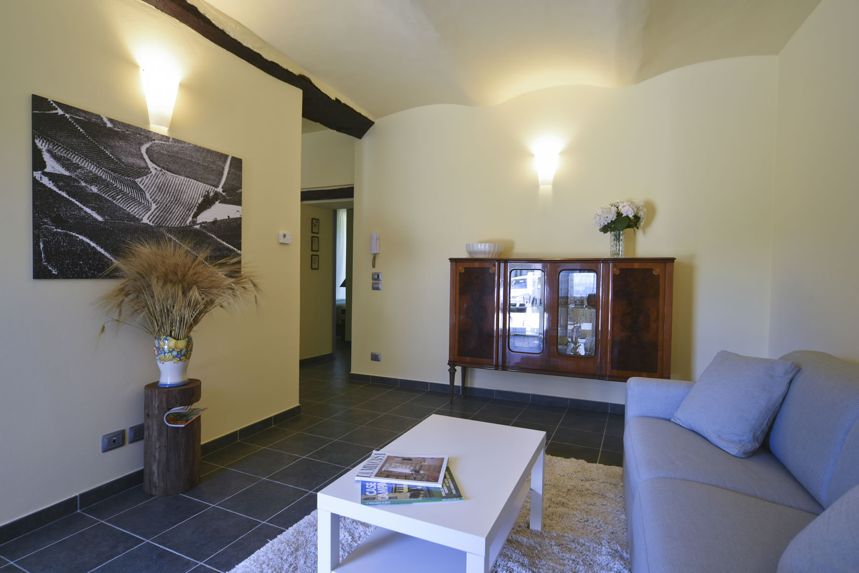 Appartamento da 80 mq, 2 camere da letto + salone + cucina + bagno + area esterna.